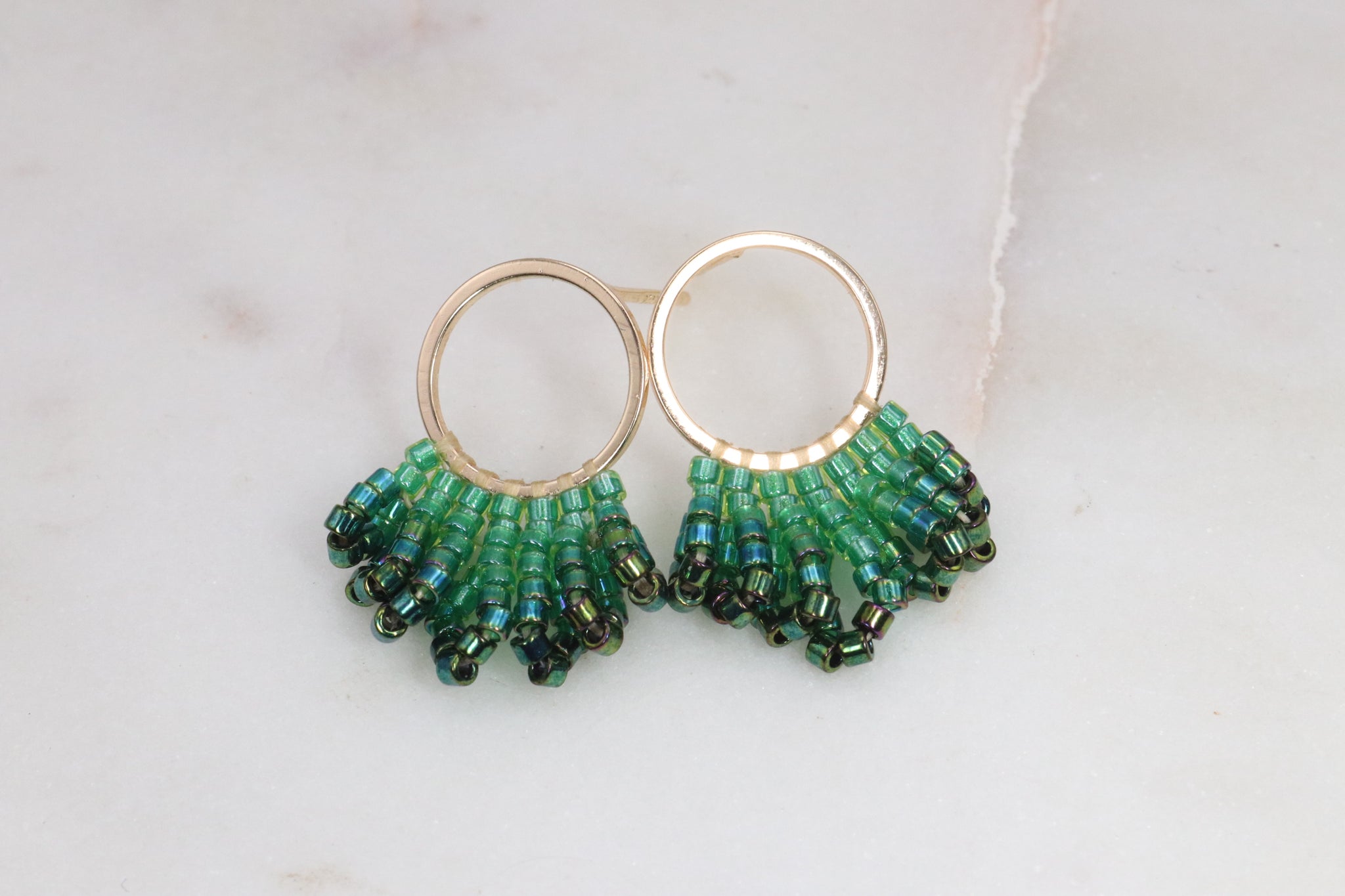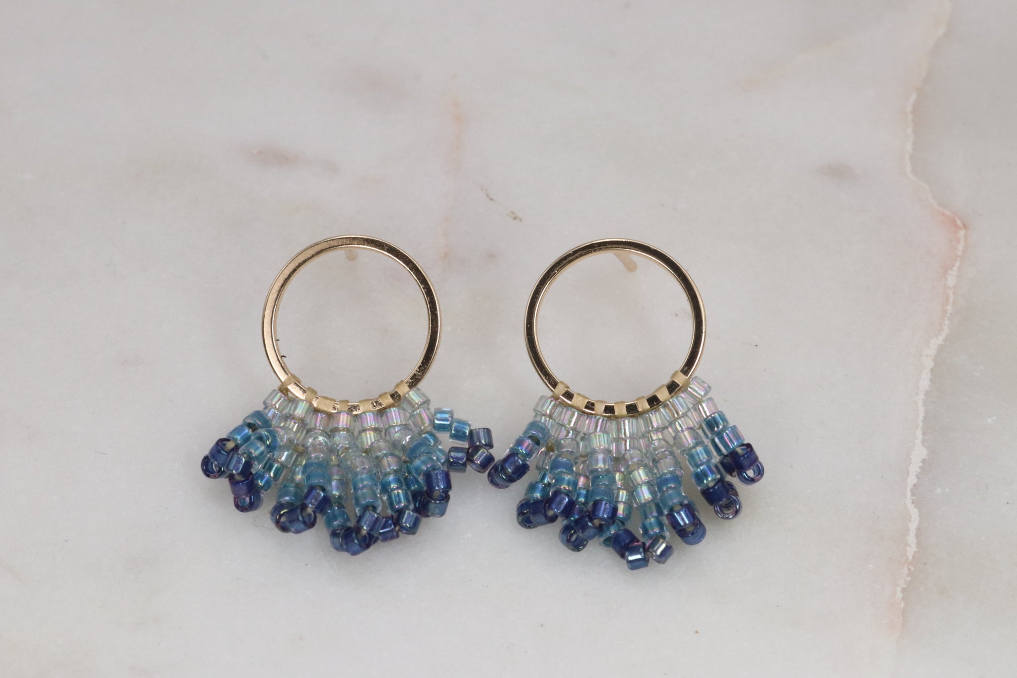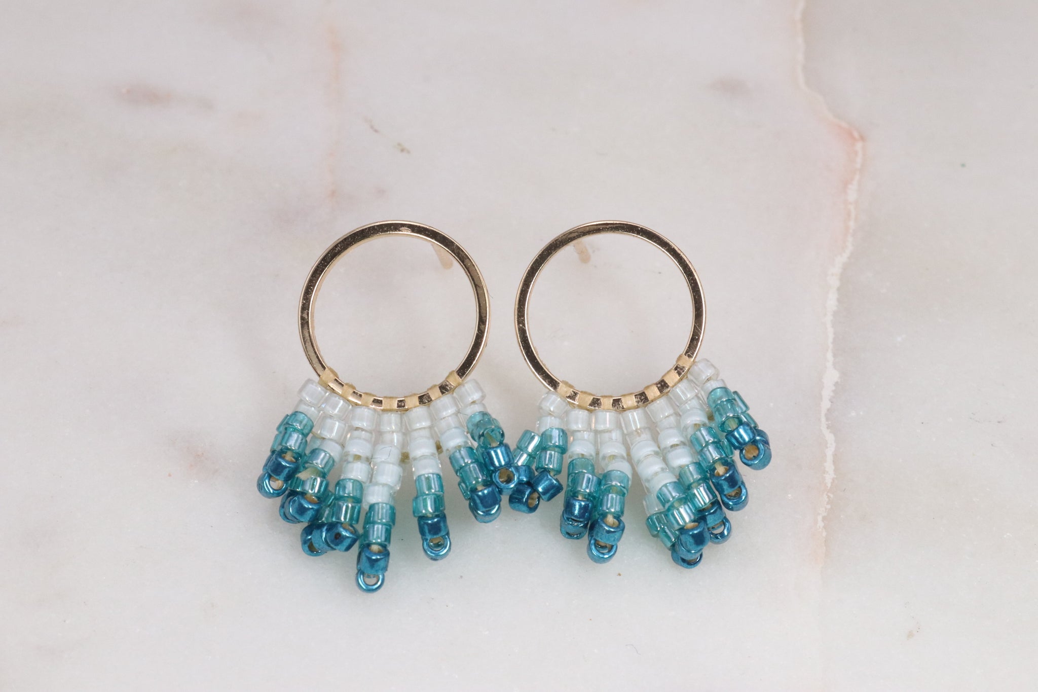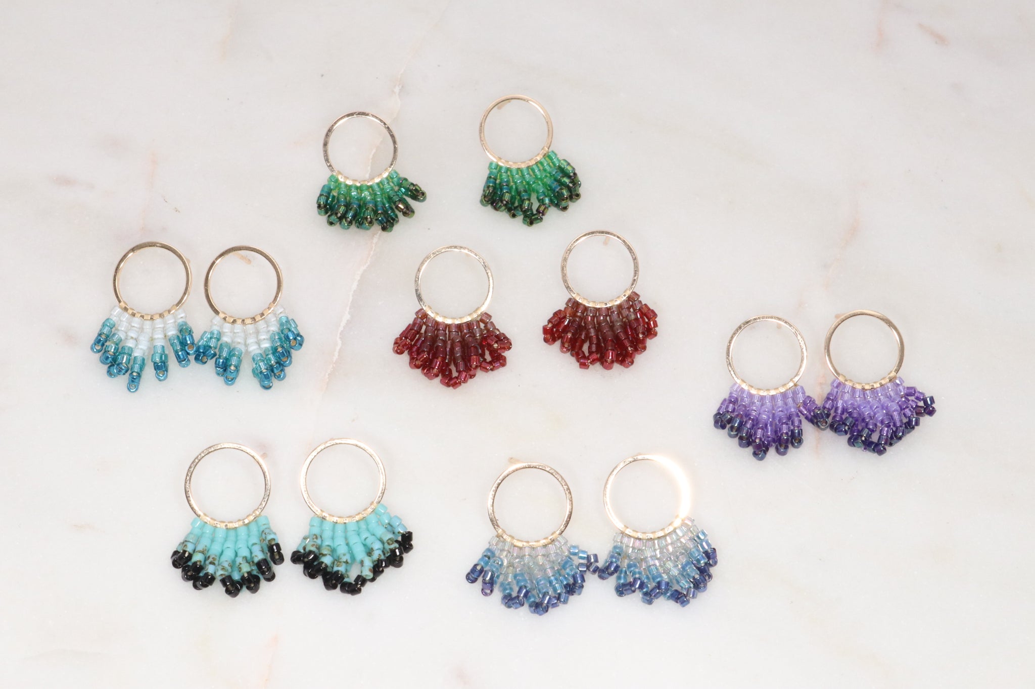 Elevate your jewelry collection with these dainty ombré seed bead earrings – where classic design meets artisan craftsmanship.